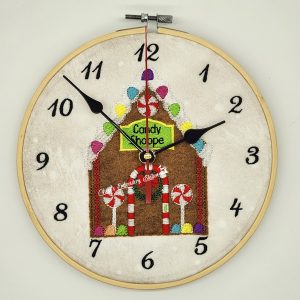 11/22 @ 10:00—EMBROIDERED CLOCK PROJECT—Vicki has designed and digitized an amazing variety of clock faces for all seasons, and you will choose and stitch one, then use the “clock works” to complete the project—they are so cute! $25