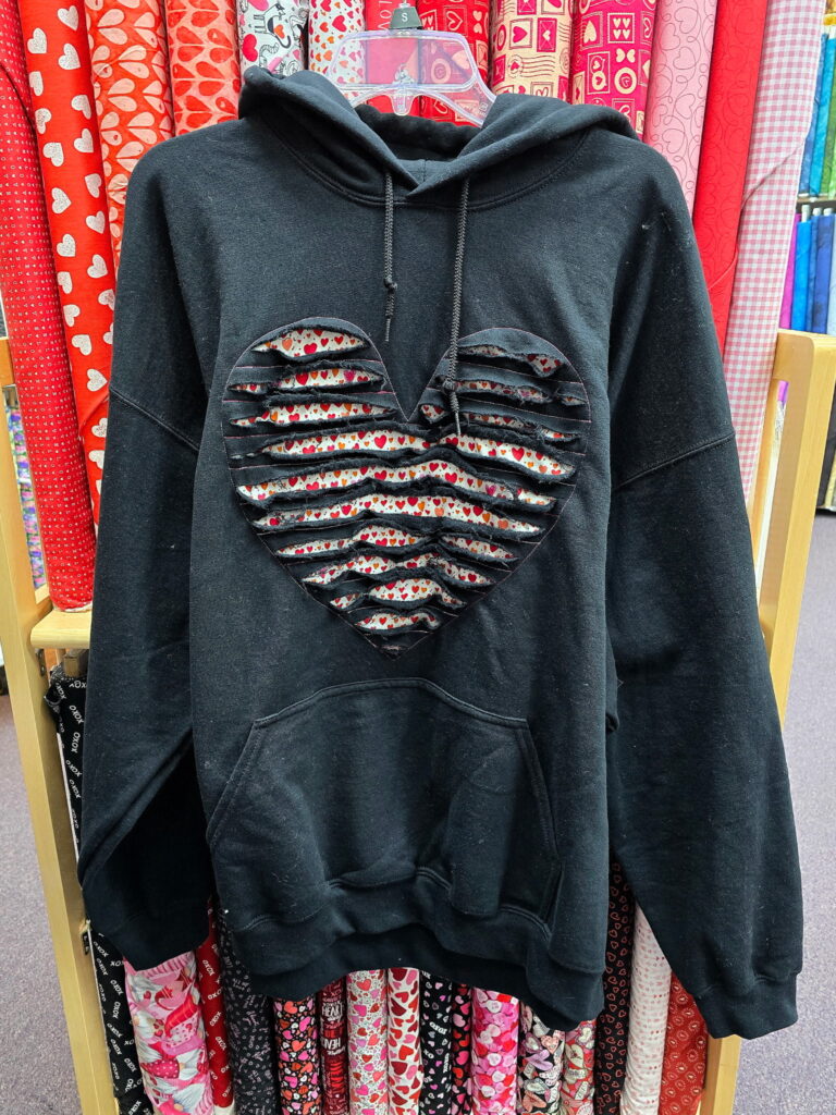 1/13 @ 6:00—REVERSE APPLIQUE VALENTINE SHIRT—Join Erin and learn how to accent a garment with a unique fabric choice and special stitching and cutting techniques—sweatshirt recommended $30